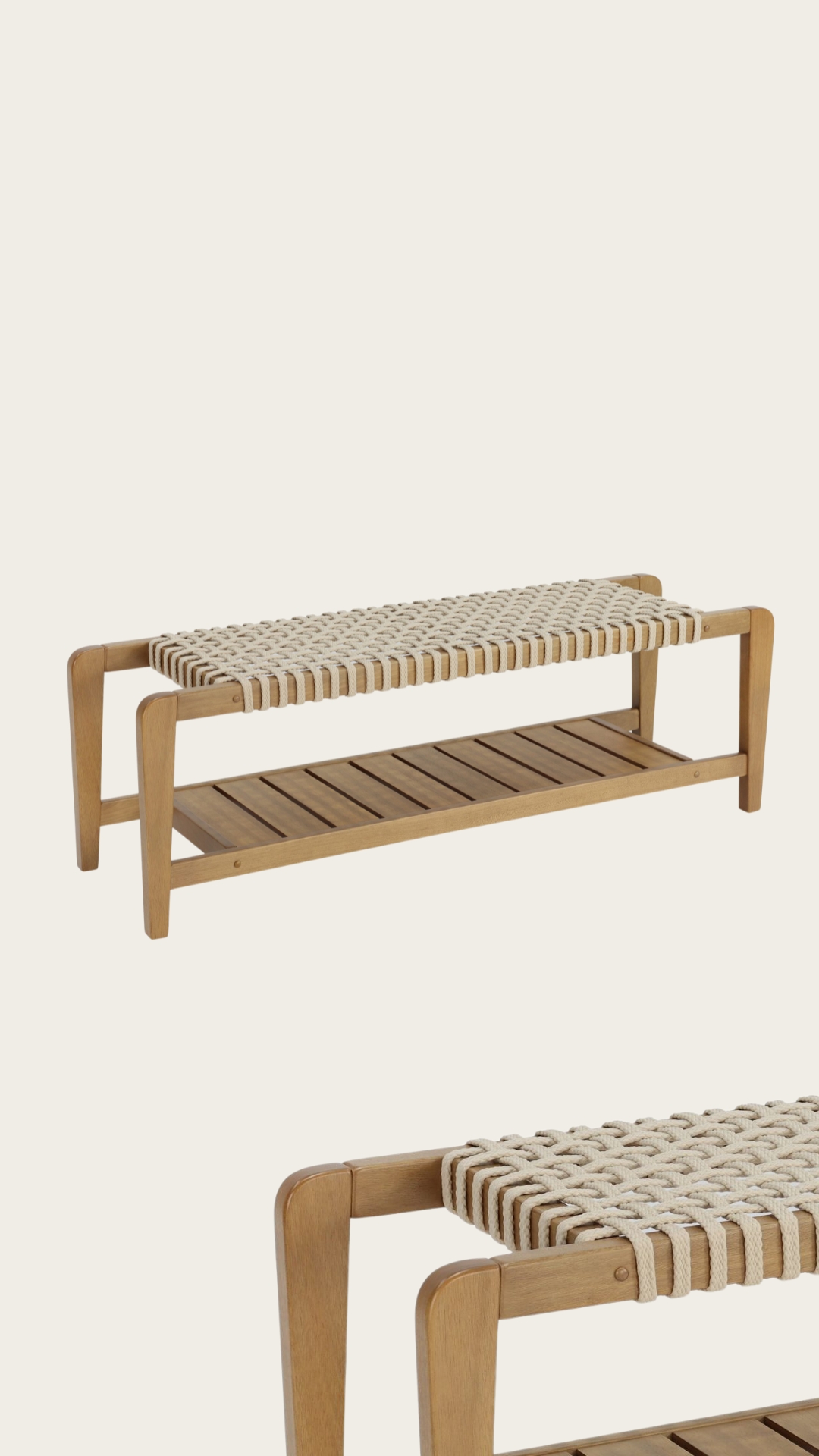 Produzido em madeira de Tauari, assento com corda náutica.