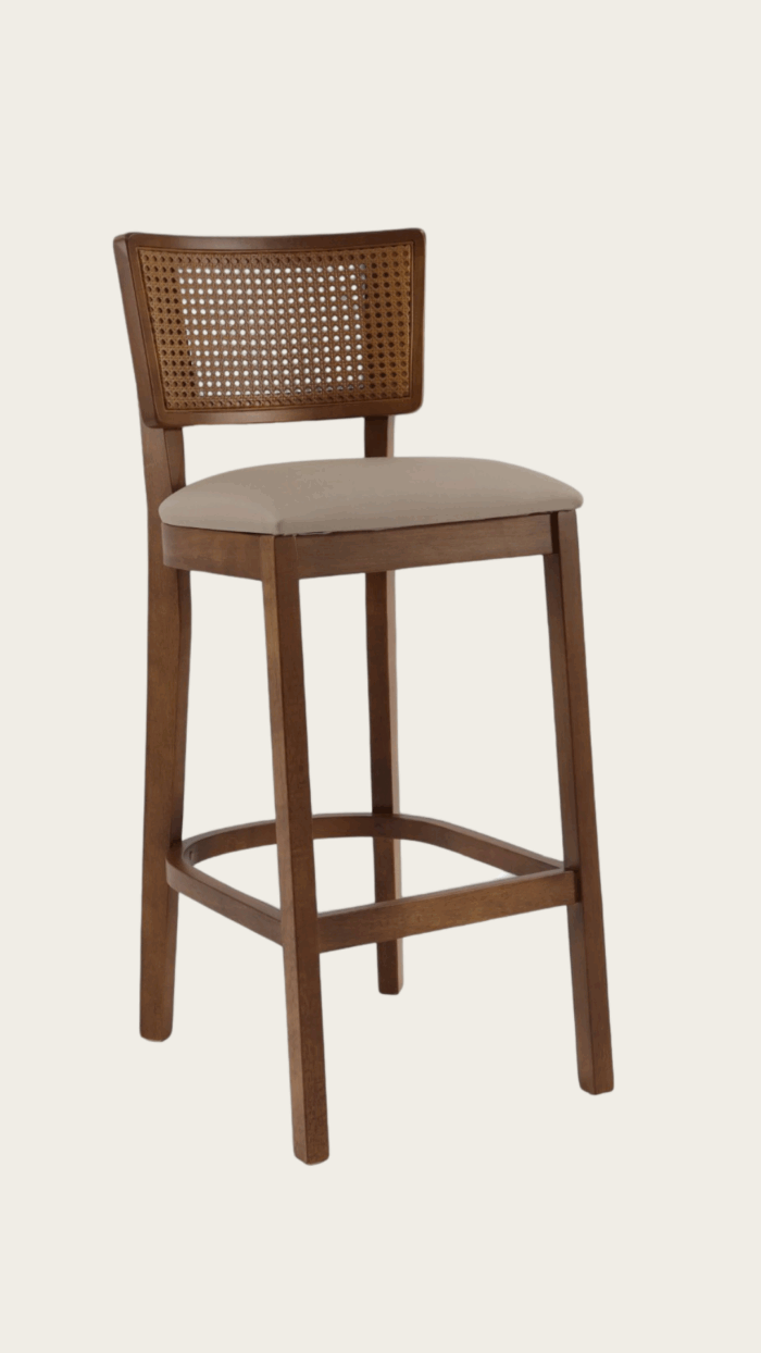 Produzido em madeira de Tauari, assento estofado e encosto em tela sextavada.