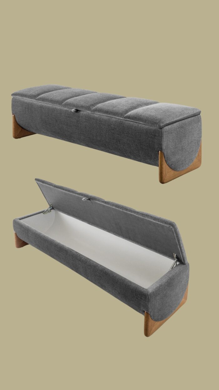 Características: Espuma D28 com acabamento em tecido e pés em madeira