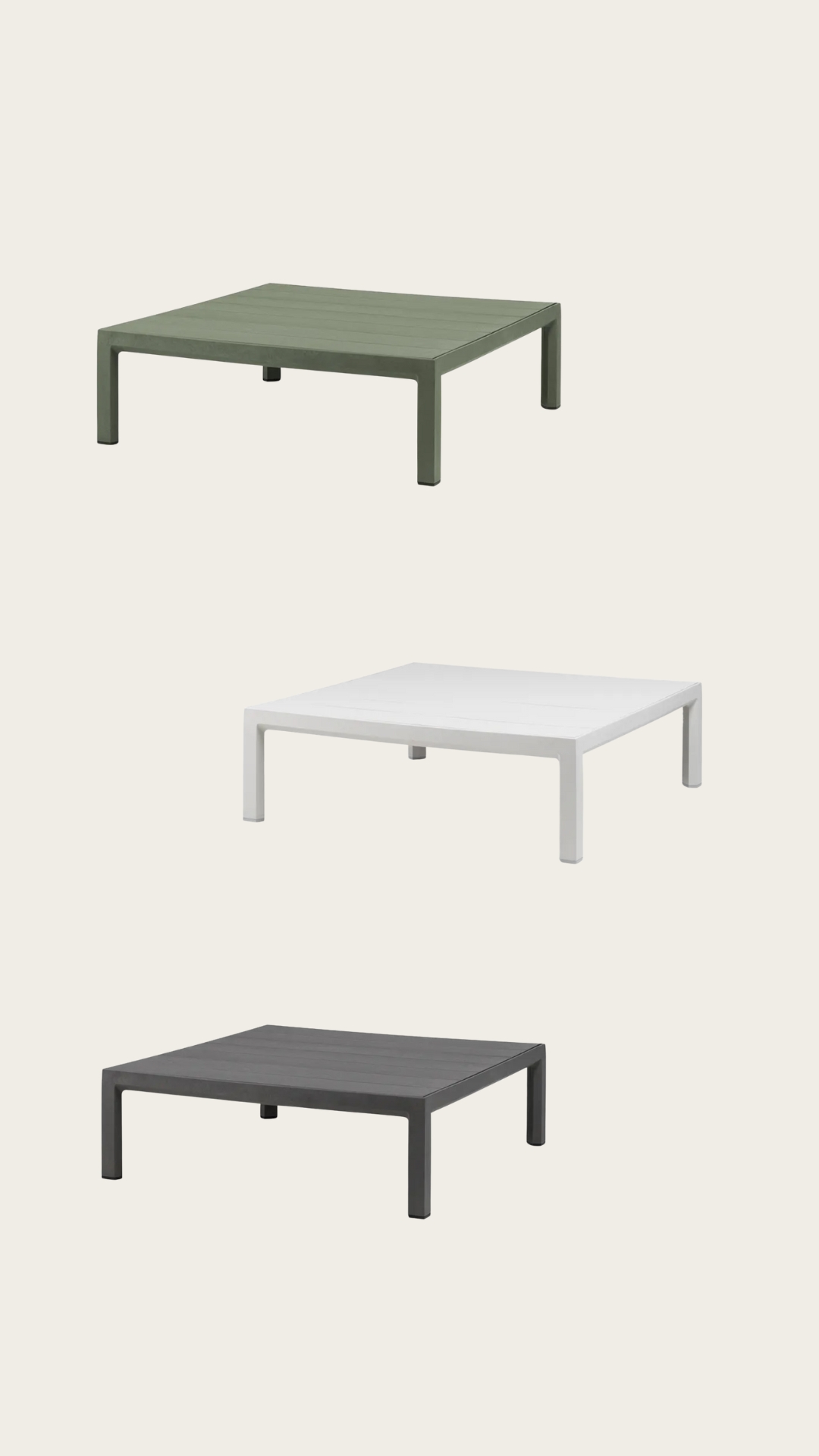Elegante e robusta, a mesa de centro ripada da coleção MAXIMO é feita de polipropileno regenerado, um material reciclável. Disponível em quatro cores atraentes.